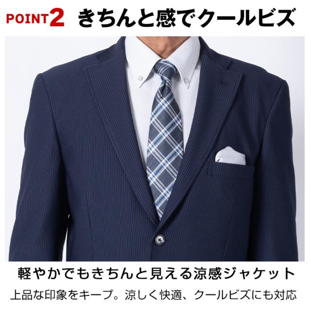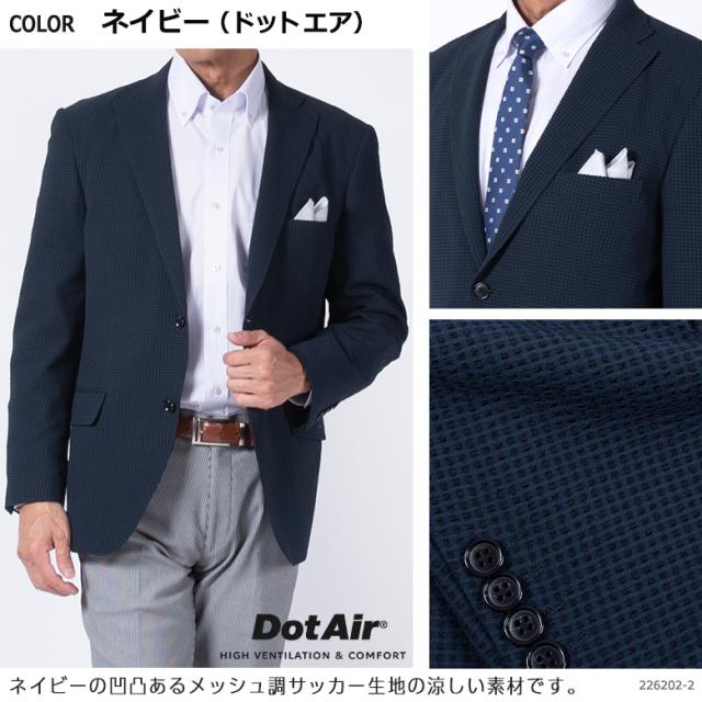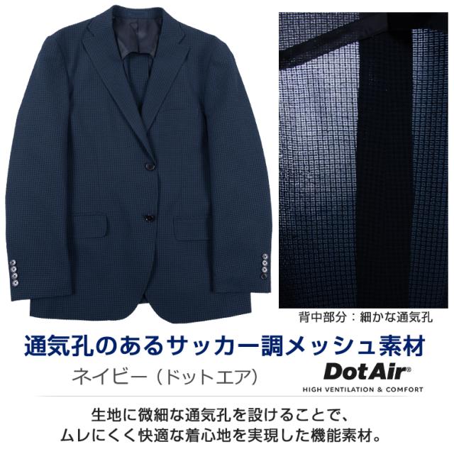 【キーワード】ジャケット シングル2つボタン 春夏 秋 スリーシーズン シアサッカー サッカー素材 紳士服 ビジネス オフスタイル ブレザー 上着 テーラードジャケット メンズ COOL BIZ クールビズ ドットエア DOT AIR 通勤 オフィス ビジカジ ジャケパン 旅行 ゴルフ ネイビー 濃紺 ダークネイビー 紺