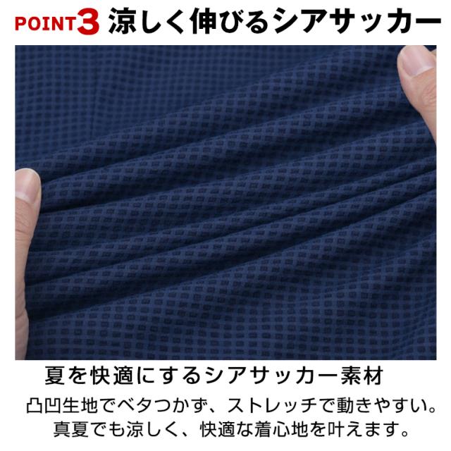 シアサッカー素材と通気素材(ドットエア)の2タイプをご用意。