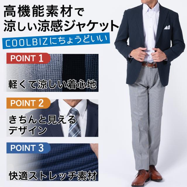 ジャケット メンズ 春夏秋 涼しい 吸水速乾 通気性 シアサッカー ドットエア 軽量 ストレッチ 2タイプ ビジネス