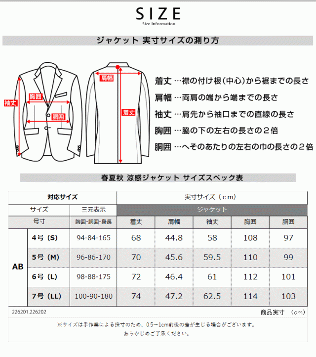 【仕様】背抜き仕様 センターベント 袖口4つボタン 左胸ポケット 左右ポケット 左内ポケット