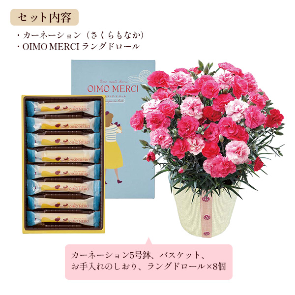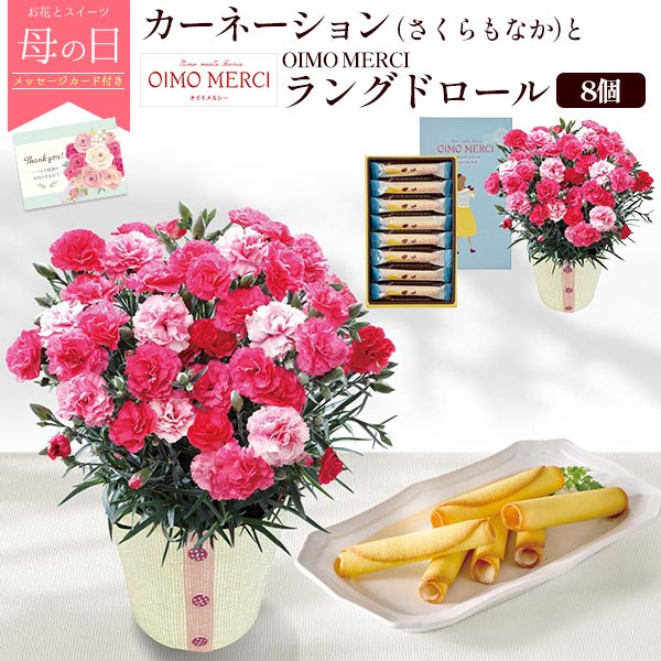 母の日 ギフト カーネーション(さくらもなか) 花とスイーツ ギフトセット 「OIMO MERCI」 ラングドロール 8個セット 焼菓子 詰め合わせ お花ギフト おしゃれ プレゼント かわいい 母の日ギフト お花セット 甘味 スイーツ 30代 40代 50代 60代 70代 メッセージカード付き