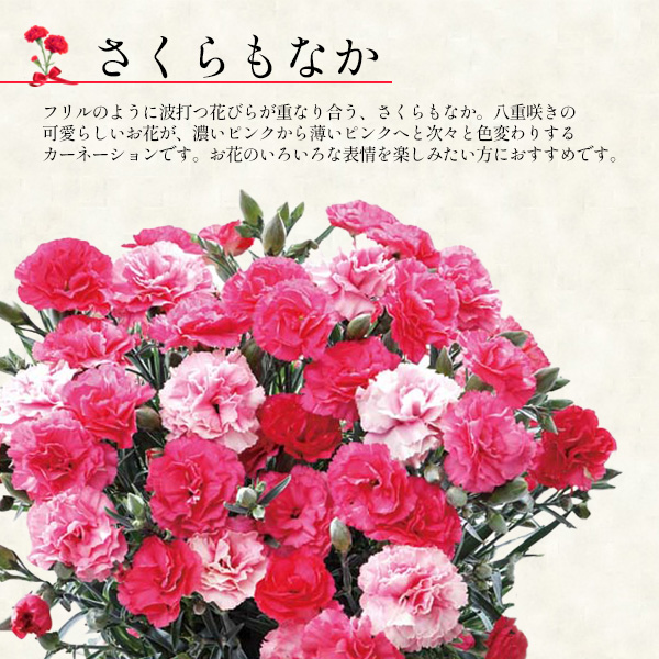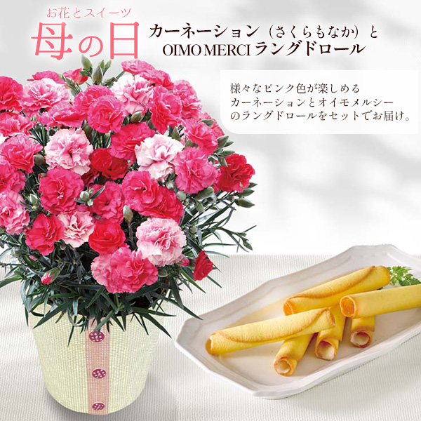 カーネーションの鉢植えとスイーツのセットが嬉しい、母の日の特別ギフト。