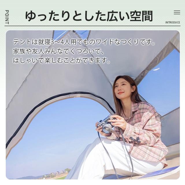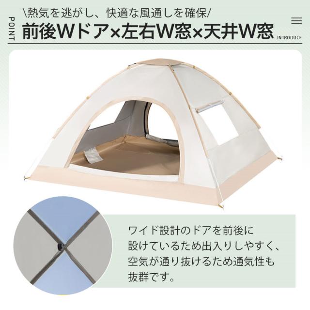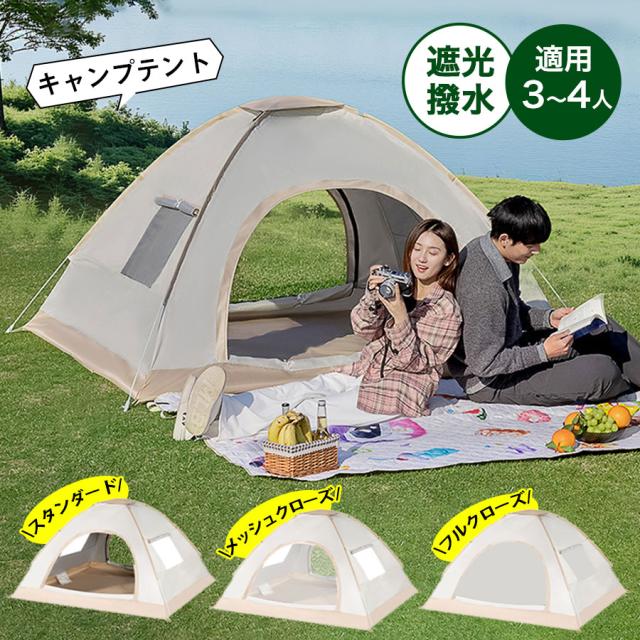 ワンタッチテント テント キャンプ 3人〜4人用 フルクローズ ドームテント UV 折りたたみ 軽量 遮光 遮熱 アウトドア 海