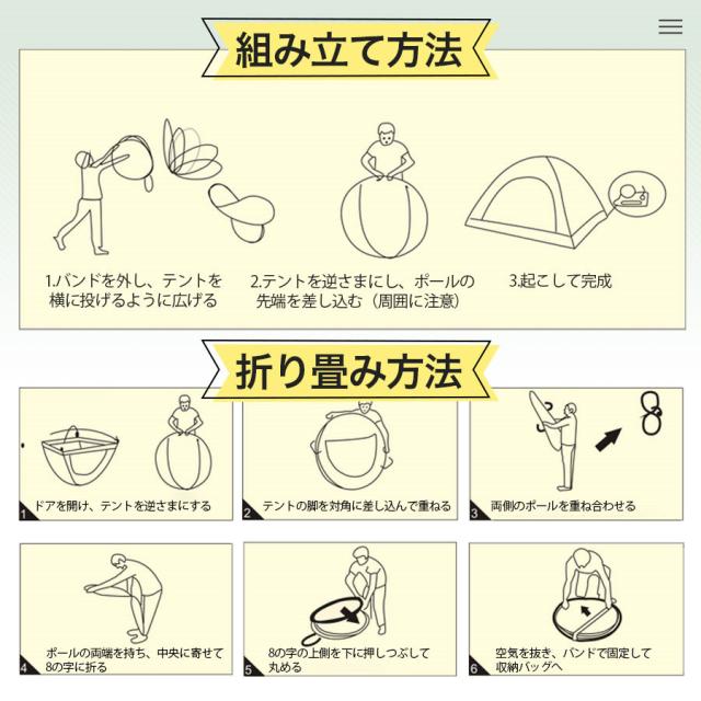 ワンタッチでパッと開くから、初心者でも簡単に設置できます。