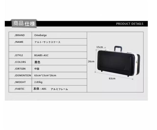 B♭アルトサックス用 サックスケース 軽量ハード ABS樹脂 ショルダー 手提げ 2.83kg ブラック
