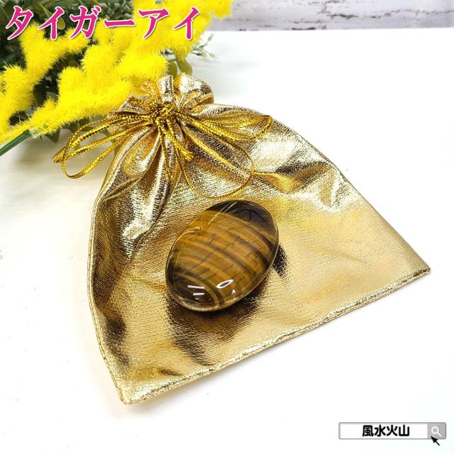 仕事運・金運の守護石「タイガーアイ 握り石」金色巾着付き