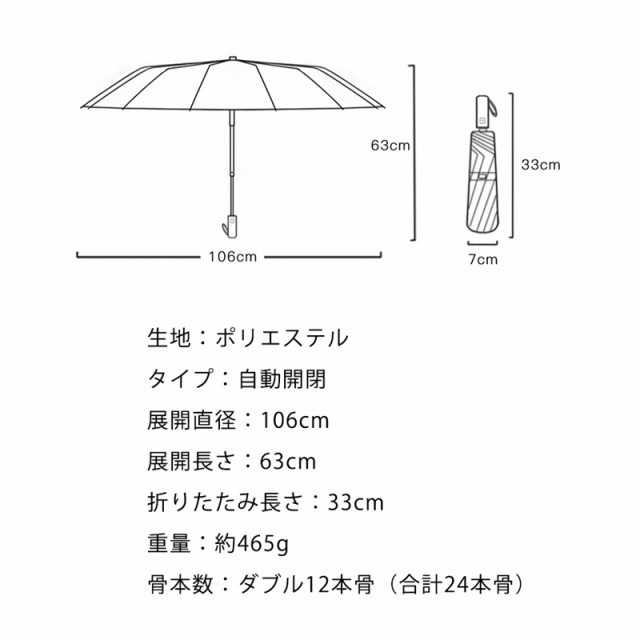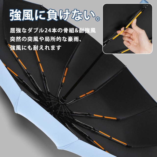 ◆丈夫構造:強風に強い24本骨構造、万が一逆さに反しても元に戻ります。