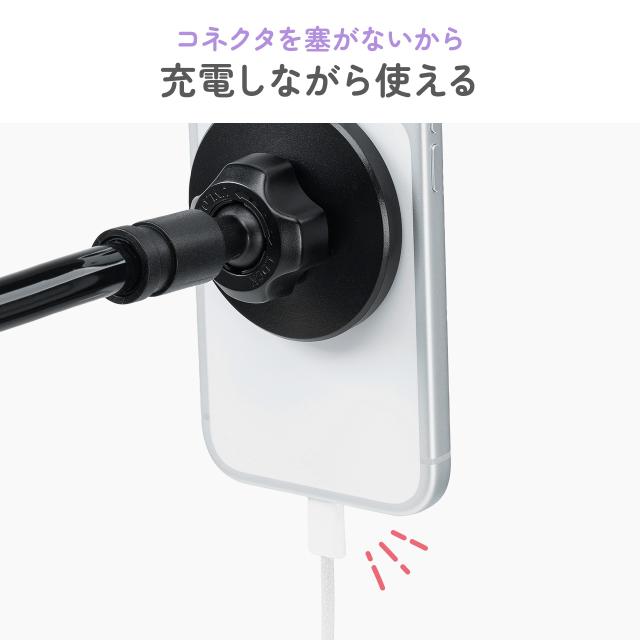 ●縦向き、横向きどちらでも取付可能なスマートフォン用アームスタンドです。●MagSafe対応のiPhoneをマグネットで簡単に着脱できます。