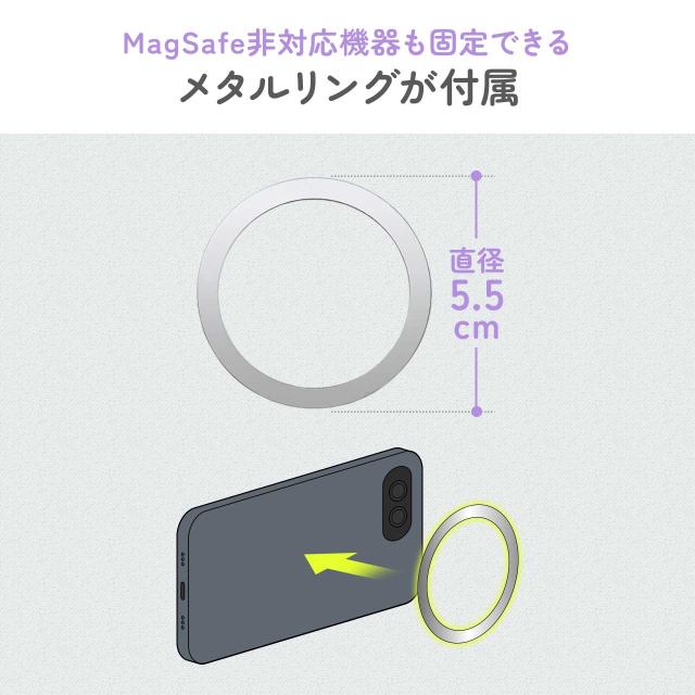 ●MagSafe非対応のスマホやケースでは付属のメタルリング(1枚付属)を貼ってご使用いただけます。