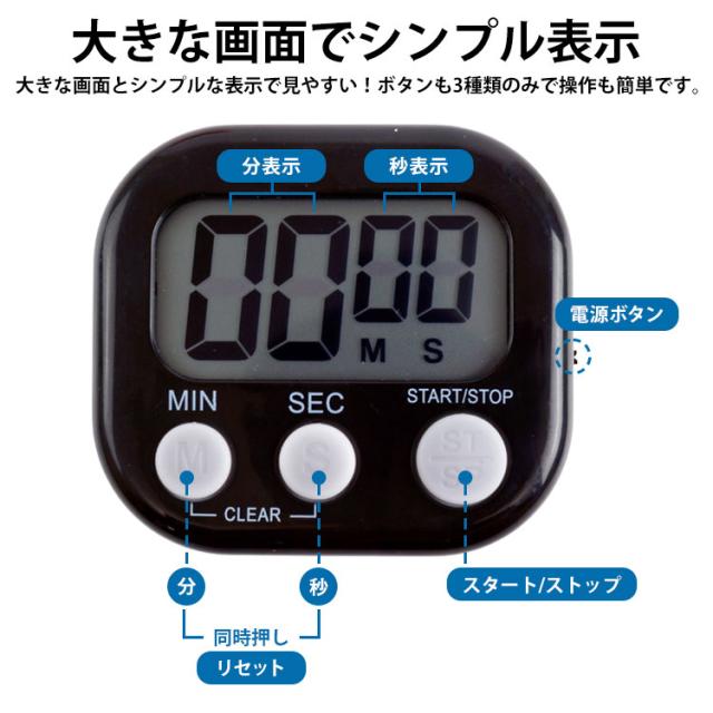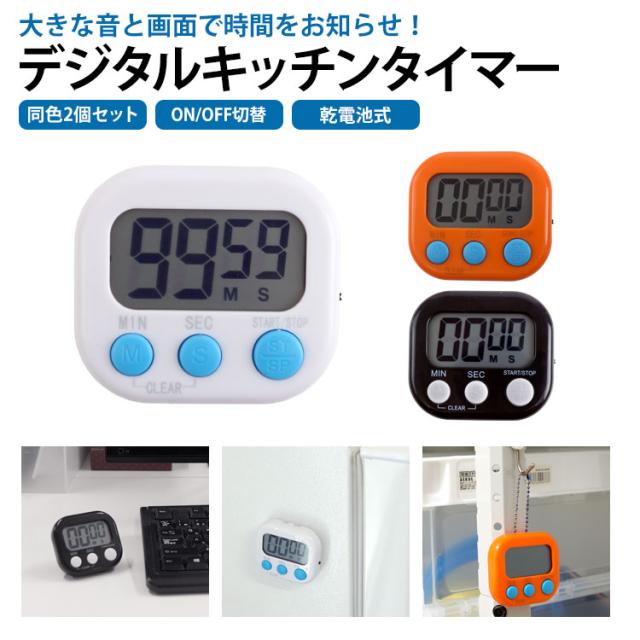 デジタルキッチンタイマー 2個セット キッチンタイマー マグネット ストップウォッチ スタンド クッキングタイマー シンプル カウントダウン カウントアップ アラーム 電池式 吊り下げ