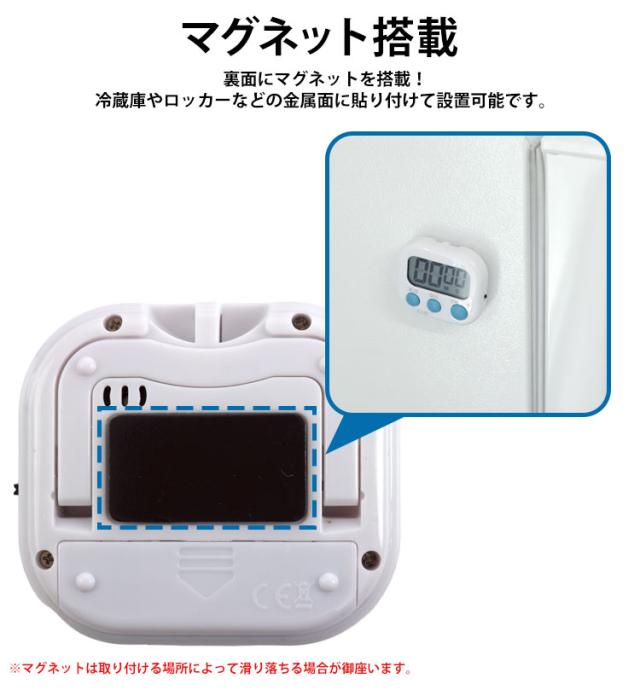 裏面にマグネットを搭載!冷蔵庫やロッカーなどの金属面に貼り付けて設置可能です。