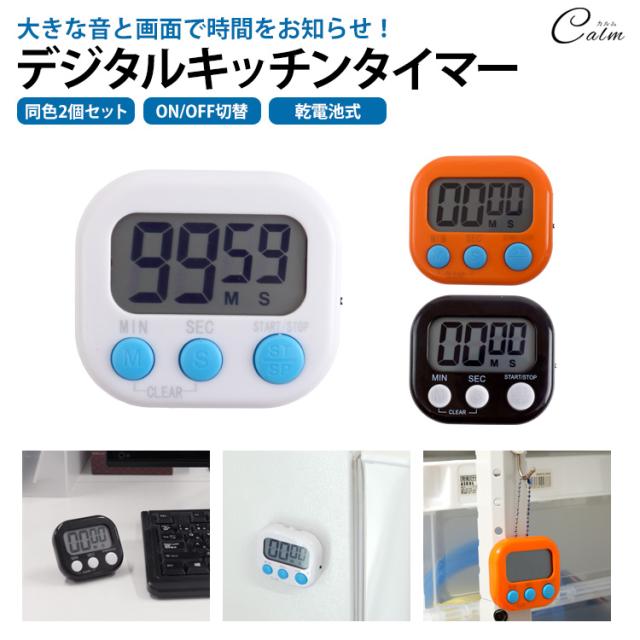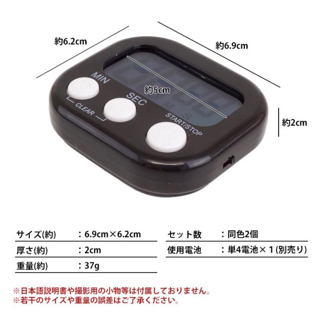 キッチンタイマー 2個 カウントダウン カウントアップ デジタル ストラップホール マグネット スタンド クッキングタイマー 電池式 シンプル キッチン用品