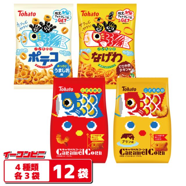 【数量限定】東ハト ポテコ/なげわ/キャラメルコーン 端午の節句パッケージ 4種各3袋セット(計12袋) こどもの日