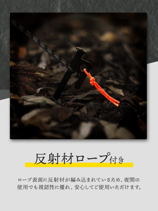 付属のロープは反射材入りで夜間でも視認しやすく、つまずき防止・回収忘れを防ぎます。