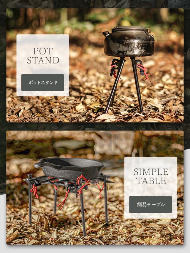 さらに表面には**鉄電泳コーティング(防錆仕様)**を施しており、雨天や湿気の多いキャンプ場でも長く安心してお使いいただけます。