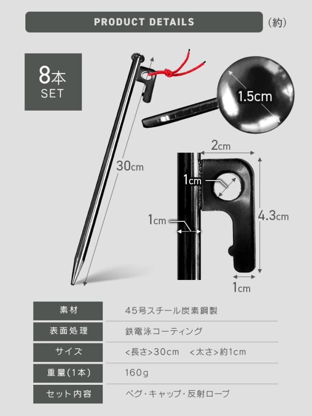 | 材質 | ペグ本体:45号スチール炭素鋼製