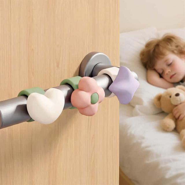 | ドアノブに通すだけで、ドア開閉時の衝撃を吸収し、壁への衝突やキズを防ぐ戸当たりクッションです。 アノブに通すだけの簡単設置なので、賃貸住宅でも安心して使え、取り外しも簡単。 動物・星・花モチーフのかわいいデザインで、インテリアのアクセントにもぴったりです。 やわらかいクッションが衝撃音を和らげ、静かで快適な空間づくりをサポート。 お得な3点セットで、リビングや子供部屋、寝室など複数箇所にまとめて使えます。 | |