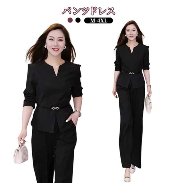 パンツドレス タック入り 卒園式 レディース ママスーツ セレモニー スーツ 婚式 入園式 Vネック ワイドパンツ 40代 パンツスーツ 二次会 入学式 卒業式 パーティー パンツスーツ 卒園式 フォーマル 30代 50代 送料無料
