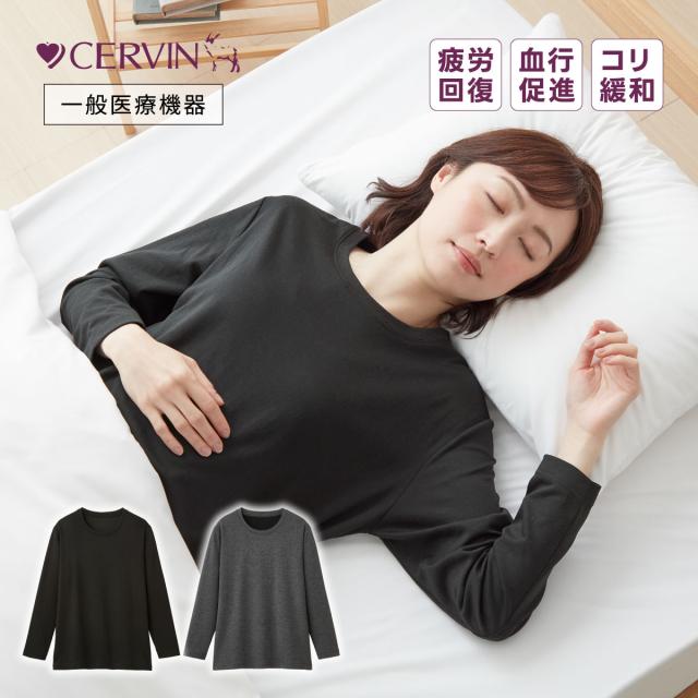 【一般医療機器】リカバリーウェア レディース 長袖シャツ リカバリーケア ルームウェア パジャマ 寝間着 着るだけ 疲労回復 血行促進 こりの緩和 リラックス ロングTシャツ トップス グレー ブラック 黒