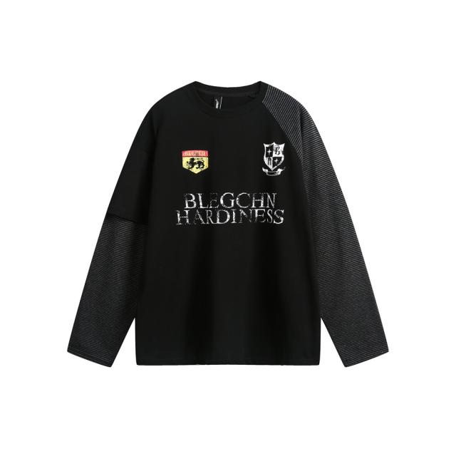 メンズ 長袖Tシャツ アメリカンビンテージ クルーネック ストライププリント 新作 オーバーサイズ ストリート系 カジュアル トップス ゆったり 合わせやすい トレンド感 QR11
