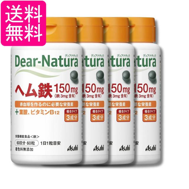 4個セット アサヒグループ食品 ディアナチュラ ヘム鉄 60粒 サプリ Dear-Natura 送料無料