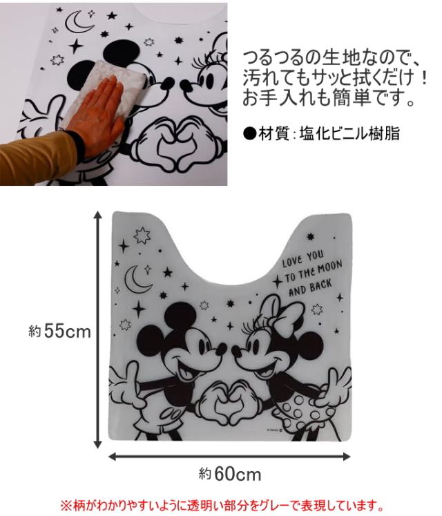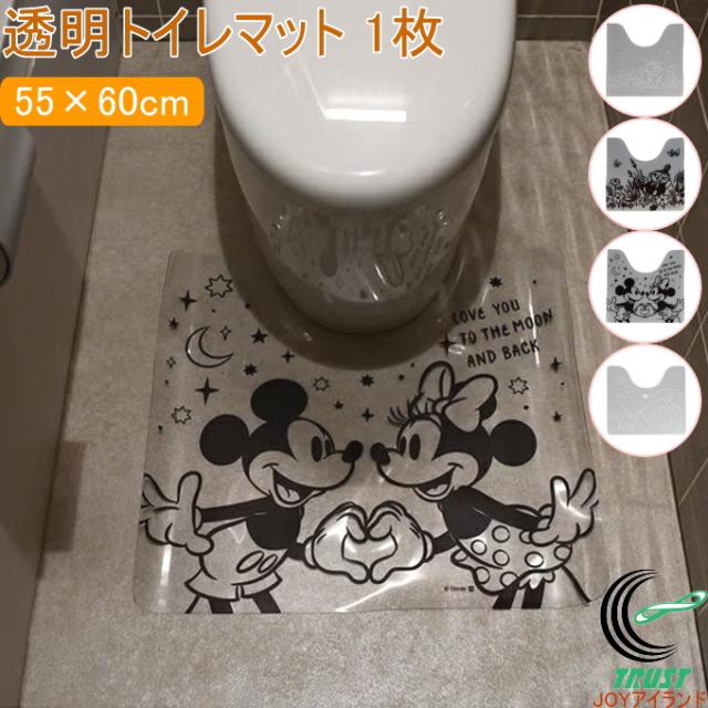 透明トイレマット 55×60cm 人気キャラクター柄 1枚 透明マット トイレ マット 透明 クリア クリアマット 拭ける キャラクター PVCマット お手入れ簡単 薄型 1mm厚 おしゃれ かわいい ムーミン ディズニー ミッキー ミニー プーさん