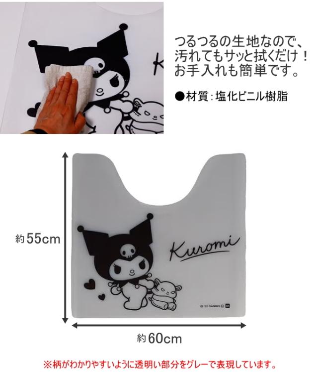 透明トイレマット 55×60cm サンリオ柄 1枚 透明マット トイレ トイレマット マット 透明 クリア クリアマット 拭ける キャラクター PVCマット お手入れ簡単 薄型 1mm厚 おしゃれ かわいい サンリオ クロミ ハローキティ