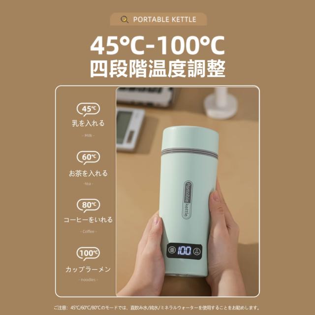 ポータブル電気ケトル 電気水筒 電気ケトル 電気ポット 45℃〜100℃ 350ml DC12V小型車/24Vトラック兼用 魔法瓶ポット ポータブル 旅行 外出 自動電源OFF 空だき防止機能 5分間で沸騰 誕生日 おしゃれ 人気商品おしゃれ 誕生日 記念日プレゼント