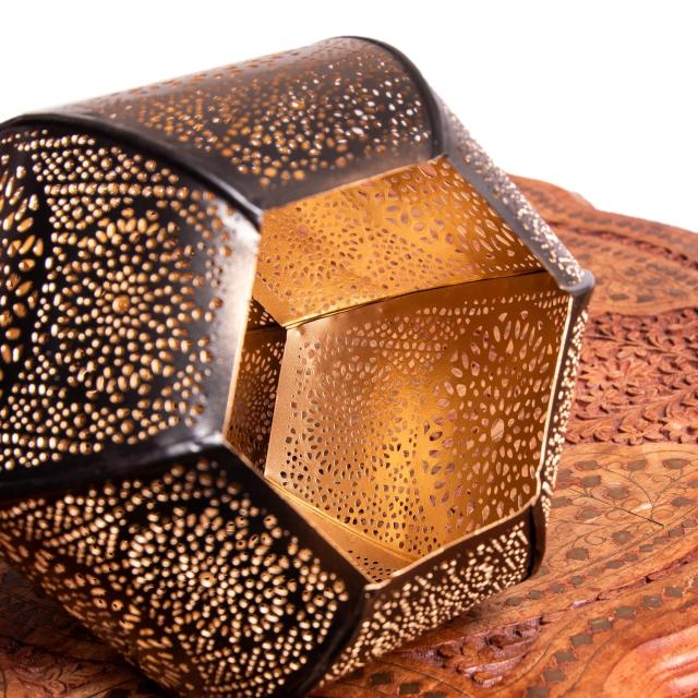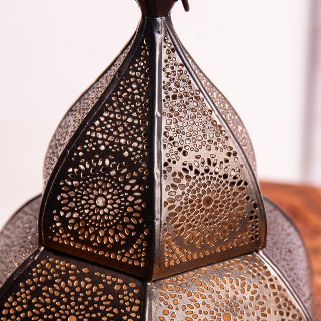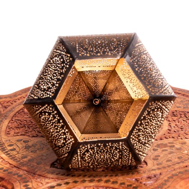 幾何学デザインを基調にした、素敵なモロカンスタイルのランプが、インドの金属の都モラダバードからやってきました。細かく空いた穴から漏れ出る光はとても綺麗です。ご自宅のお部屋に、お店のインテリアとしてもオススメです。遠い国からやってきたものではありますが、不思議と日本の家屋にもぴったりフィットします。