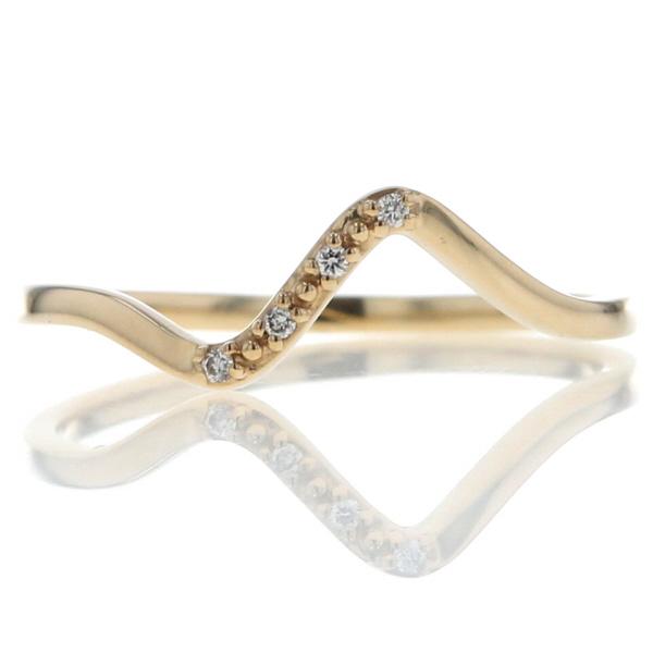 K10YG イエローゴールド リング ダイヤモンド ウェーブ ライン ジグザグ 指輪 14号 【新品仕上済】【af】【中古】