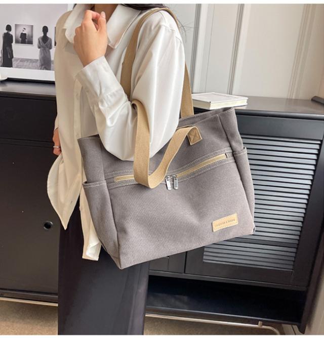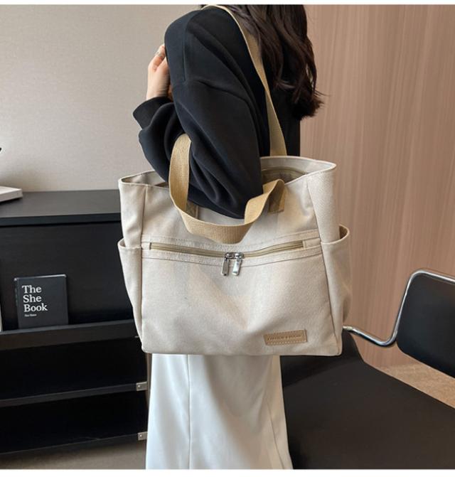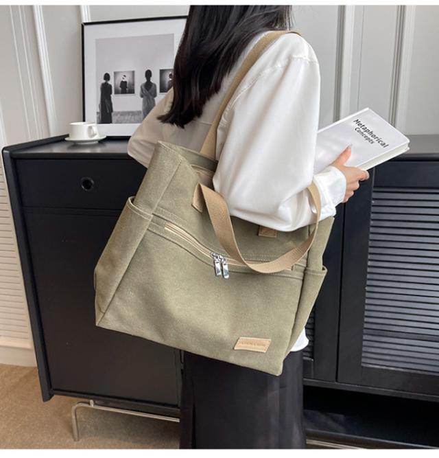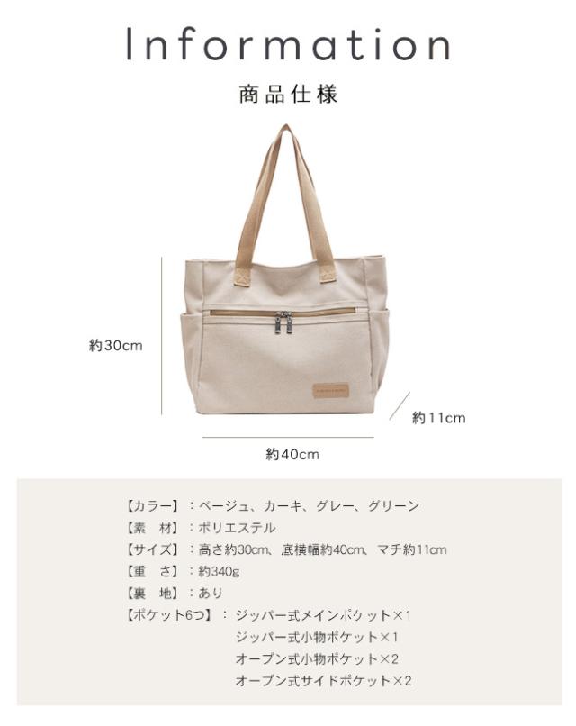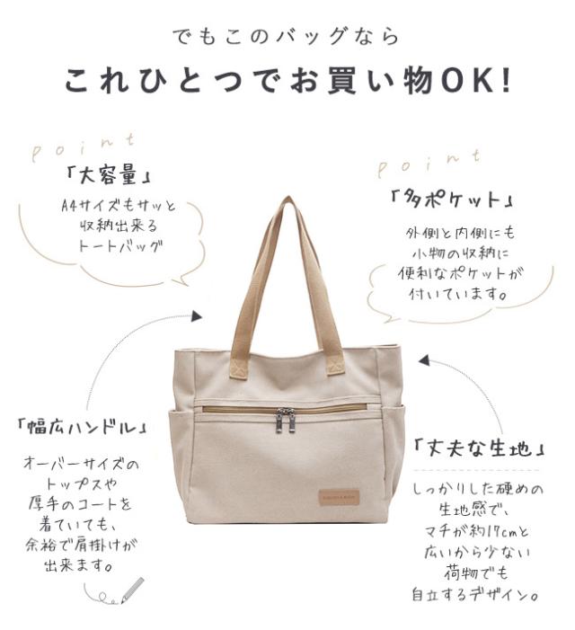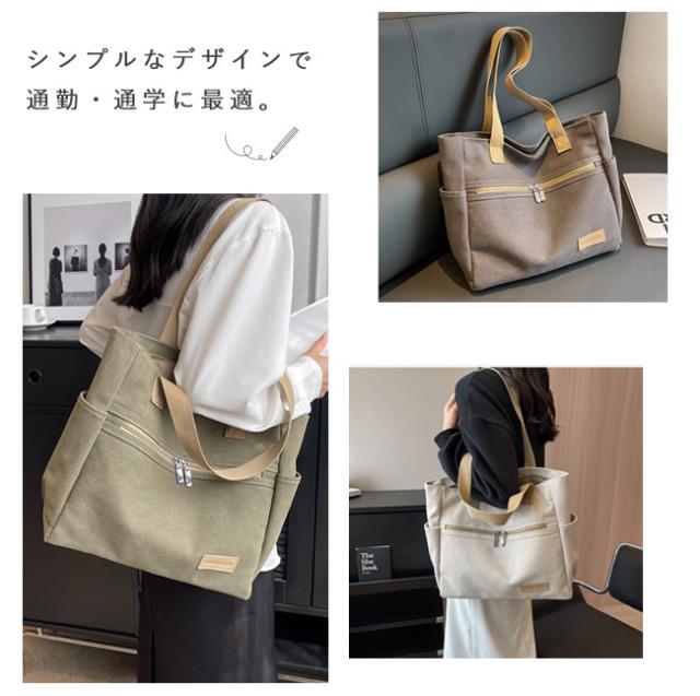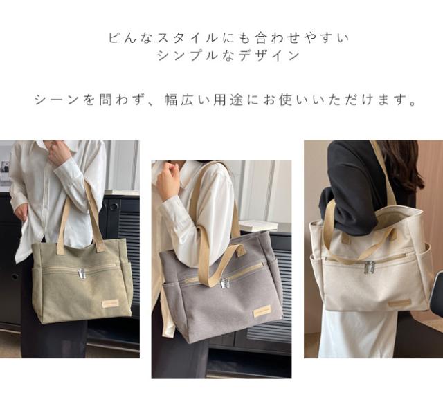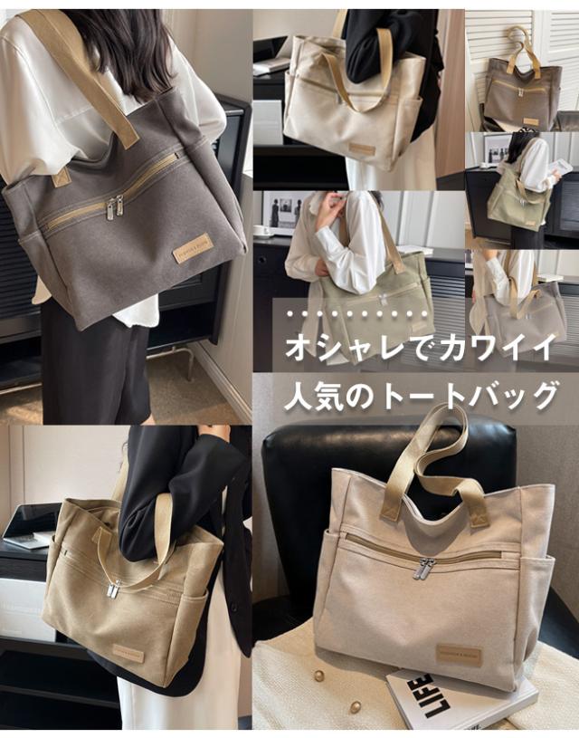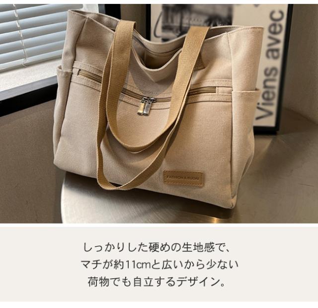 キャンバストートバッグ レディース 肩掛けバッグ かばん カバン ジッパー式 手提げかばん 自立 A4 大容量 無地 通勤 通学 オフィス かわいい おしゃれ カジュアル