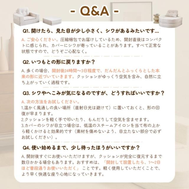 【圧縮スポンジ詰め込み、長座りしてもへたらない】高密度圧縮スポンジを採用することで、荷重分散性に優れ、反発性も抜群です。長期間使用してもへたりにくく型崩れしません。ふんわりと包み込むような感触と安定したサポート性を両立し、長時間座っても寝ても快適です。