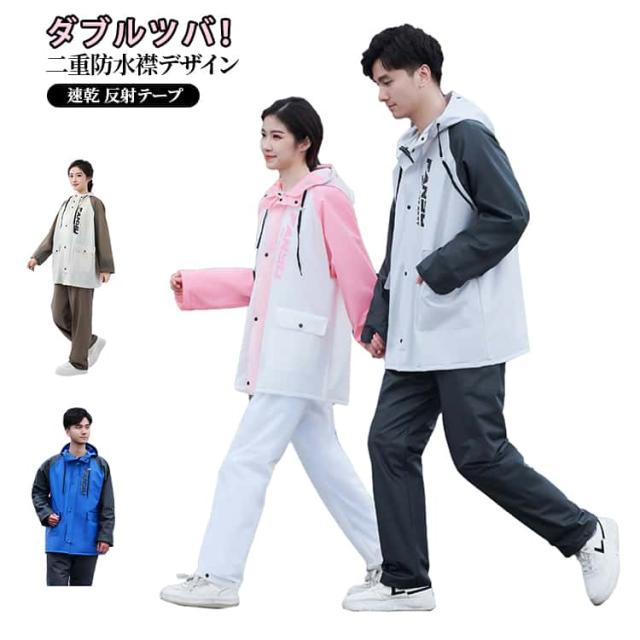 メンズ レインスーツ 上下セット ファスナー 完全防水 セパレート レインコート 自転車 レディース 防水二重襟!ダブルツバ スナップボタン パンツ レインウェア 梅雨対策 ポケット付き レインジャケット 豪雨対策 防水二重襟!