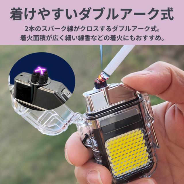 電子 ライター アークライター プラズマライター USB充電 タイプC typeC 充電コード 付き キャンプ アウトドア バーベキュー BBQ 登山 山登り ライト 照明 遭難 防災 グッズ 釣り 作業 たばこ タバコ 煙草 お香 明るい 高輝度 便利 多機能 作業灯 非常灯 SOS 点滅 仏壇 お墓参り 小型 軽量 軽い 持ち運び 安全 安心 ロック オシャレ お洒落 かっこいい クリア 光沢 プレゼント ギフト 高齢者 火を使わない 風に強い