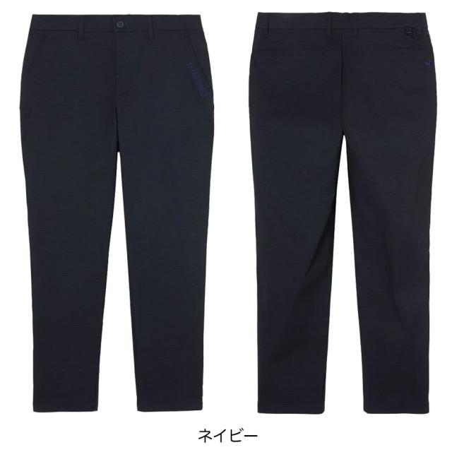 快適な履き心地と洗練されたデザインを兼ね備えたテーパードロングパンツ■先染め糸を使用したミニダイヤ柄は、上品さとデザイン性を両立し、ゴルフスタイルをお洒落に引き立てます。