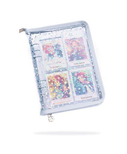 トレカケース ぱしゃこれ収納ファイル トレーディングカードバインダー A5 6穴 4ポケット両面収納リフィル20枚入り 160枚収納 推し活グッズ 持ち歩く レインボー星柄 (ライトブルー)