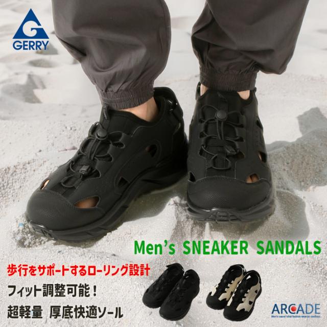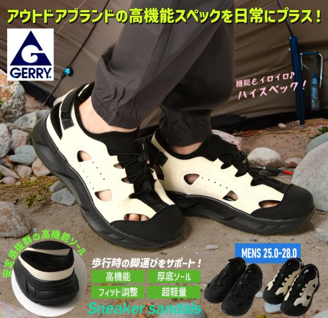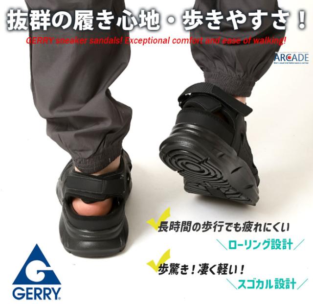 高機能サンダル メンズ GERRY ジェリー スニーカーサンダル 軽量 厚底 ドロスト フィット調整 コンフォートシューズ