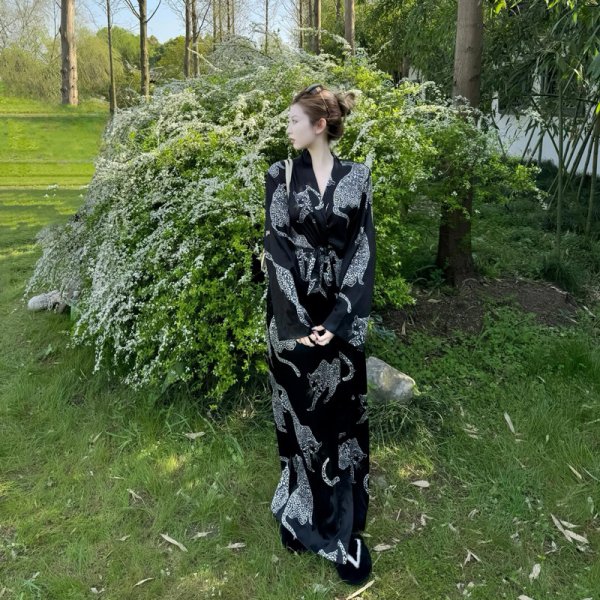 目立ち度MAX!個性派ファッション ゆったりデザイン/ドット系 オシャレなトラ柄デザイン浴衣風ワンピース シャツワンピース カジュアル 着物ワンピース ゆったりデザイン