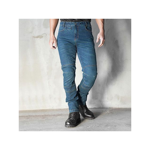 どんなスタイルにも合わせやすいシンプルなデザインのライディングジーンズ。