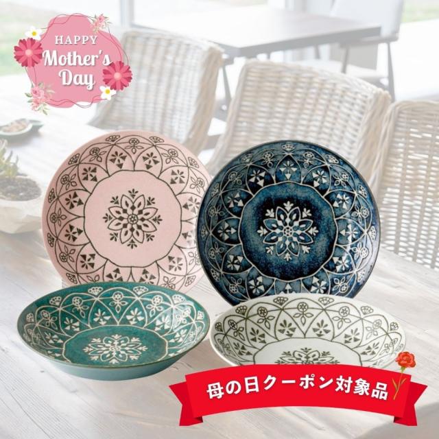 母の日2026 ギフト パスタプレートセット 4枚入 モロッコ調 磁器 マルサン近藤 化粧箱 メッセージカード