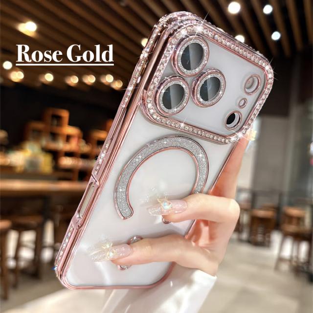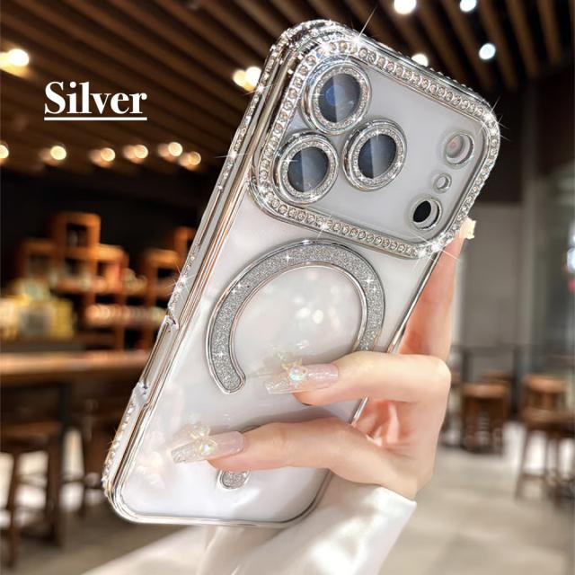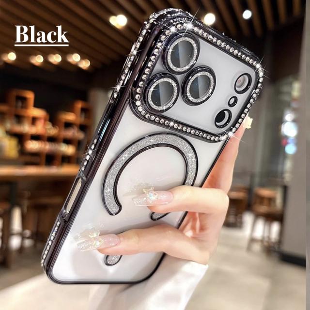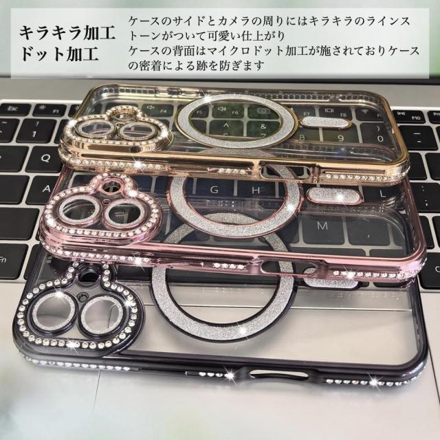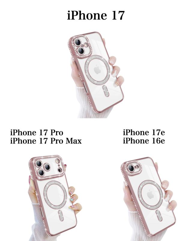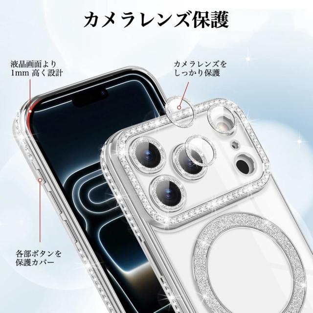 【強化ガラスフィルム付】iPhone 17 ケース iPhone 17 Pro 17 Pro Max iPhone 17e /16e ケース 透明 メッキ加工 Magsafe対応 きらきら ラインストーン 衝撃吸収 キラキラ 女性 韓国風 可愛い カメラレンズ保護 おしゃれ ストラップホール付き クリア 保護フィルム