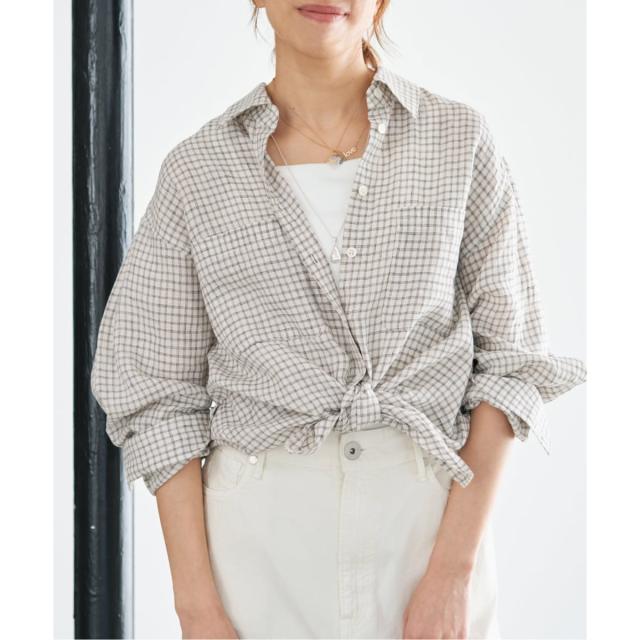 繊細なチェック柄が上品なフレンチリネンシャツ。