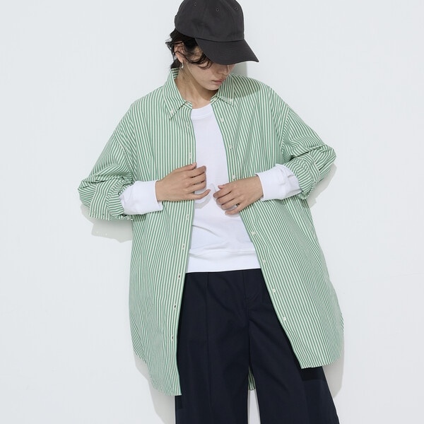 ボタンダウンデザインで、クラシックながらも新鮮なロング丈にすることで旬なシルエットです。
