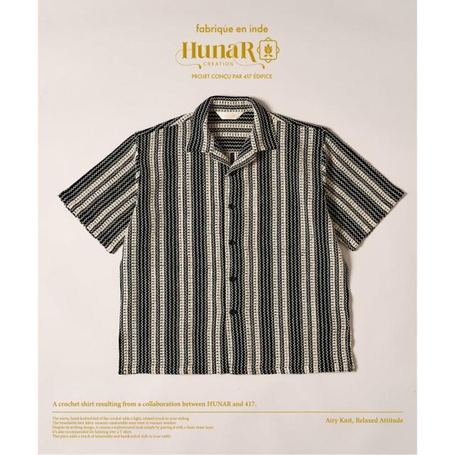 HUNARと417のコラボレーションによるクロシェシャツ。