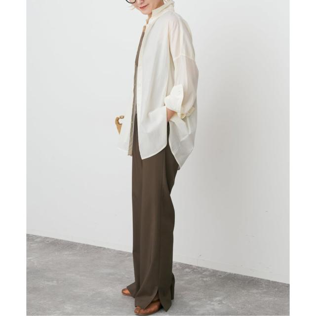 裾のスリットが軽さをプラスし、パンプスにもスニーカーにも好相性。