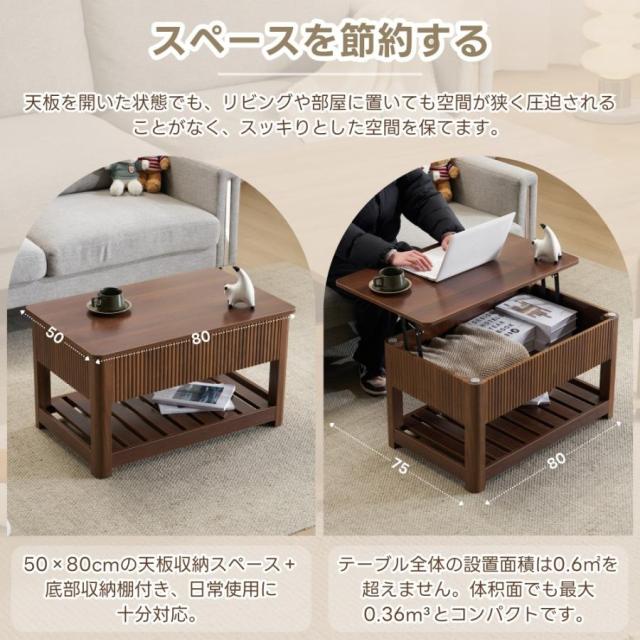 「クーポン配布中」多機能 昇降式テーブル ローテーブル センターテーブル リビングテーブル ソファテーブル 昇降式 収納テーブル 幅80cm 折りたたみ 天板昇降 収納付き 大容量 簡単開閉 天板昇降 家庭用テーブル 新生活応援