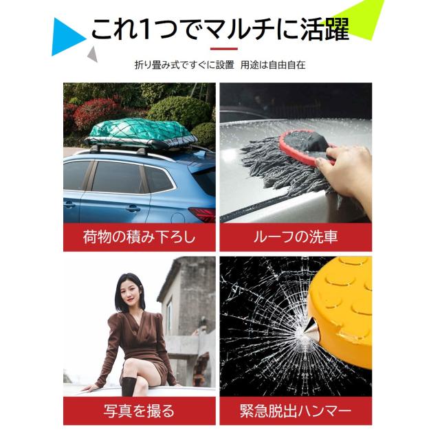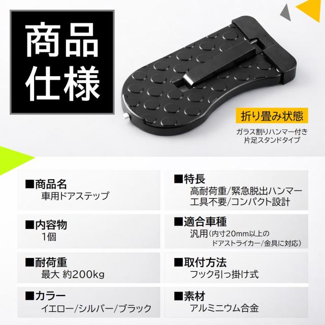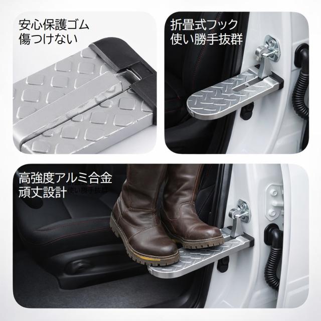 ドアステップ 1個 車用 カーステップ 踏み台 昇降ペダル 脚立 洗車 補助 ルーフ キャリア 積載 屋根 汎用 車 SUV 折りたたみ 簡単 滑り止め 脱出ハンマー 多機能