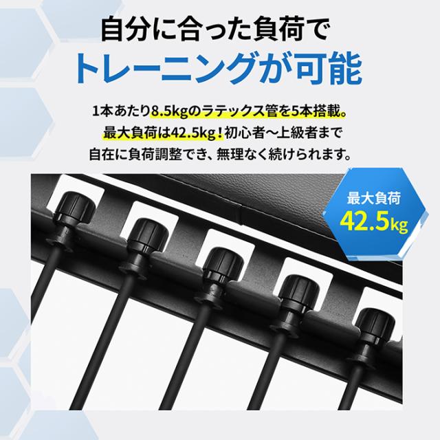 【長く使える安心の高品質設計】 耐久性に優れたスチールフレームとラテックス管を採用し、長期使用にも安心♪ショルダーパッドや4段階調節の手すり棒で、最適なフォームを実現♪静音設計のロープシステムと滑らかな滑車(プーリー)で、ストレスフリーなトレーニングが可能です♪初心者でも安心して組み立てができる日本語組み立て説明書、エクササイズメニュー例付き♪