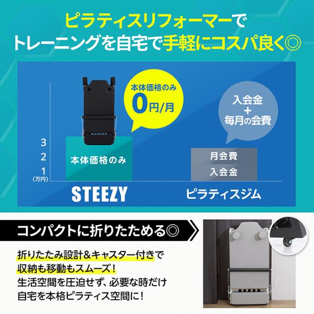 STEEZY ピラティス リフォーマー ピラティスマシン 折りたたみ式 ラテックス管 ピラティスコアベッド マシンピラティス 体幹 ストレッチ 静音設計 初心者〜上級者 シッティングボックス別売り 【国内企画 /国内サポート】