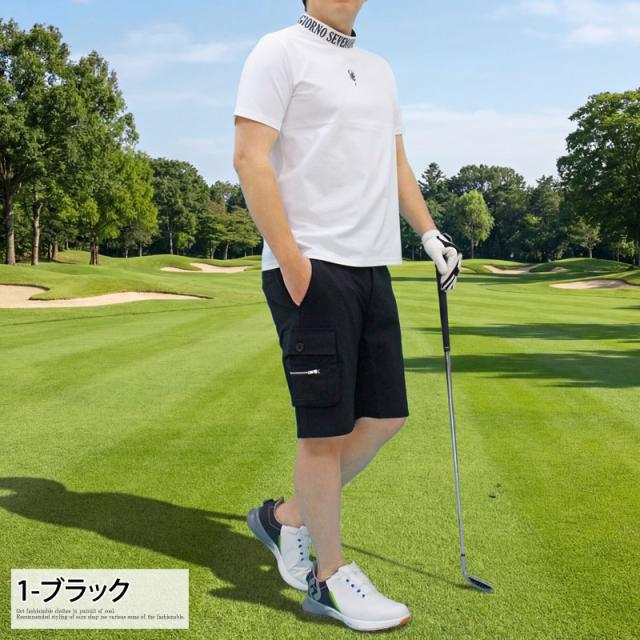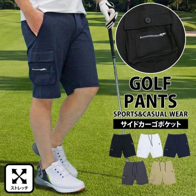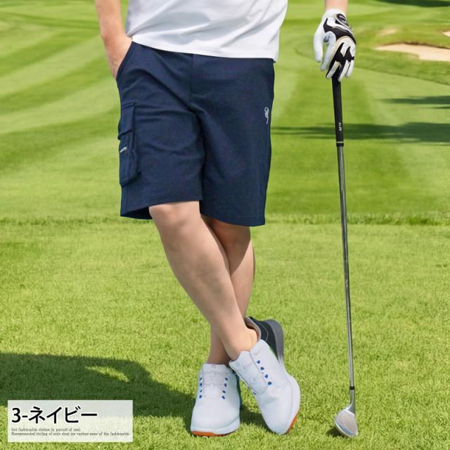 送料無料 ゴルフパンツ メンズ ゴルフウェア GIORNO SEVEN ジョルノセブン ハーフパンツ ショートパンツ ストレッチ ウエストゴム サイドカーゴポケット ロゴ刺繍 春夏 ネコポス
